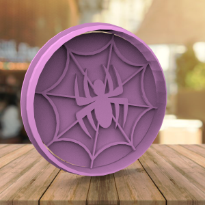 Cortante redondo con tela de araña y araña marcada. Consta de 2 piezas. Contorno mas placa que marca el diseño.