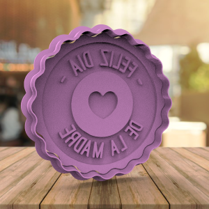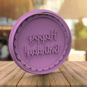 Cortante redondo con leyenda Feliz día. Consta de dos partes, contorno y placa que marca el diseño.