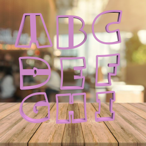 Consta de mayusculas y números. Tamaños disponibles 5 cm y 8 cm.