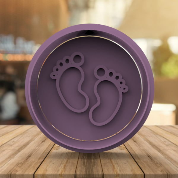 Este es un cortante para repostería con forma de Pies mini. El molde está formado por dos piezas; contorno y placa que marca el diseño. Esto hace que el cortante sea muy versátil tanto para horneado como para la decoración de la cookie.