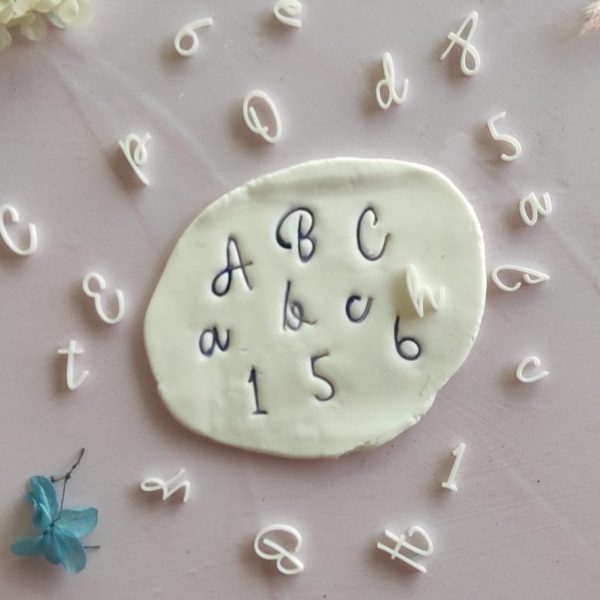 Tamaño: La A mayúscula mide 2 cm, la a minúscula mide 1 cm y los numeros 1.8 cm. Las otras letras van en proporción.