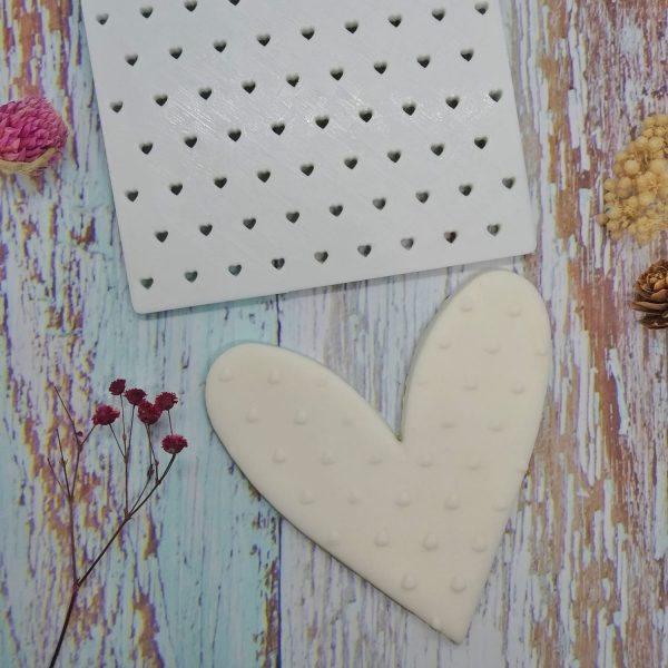 Textura de 10 cm x 10 cm que marca en relieve pequeños corazones.